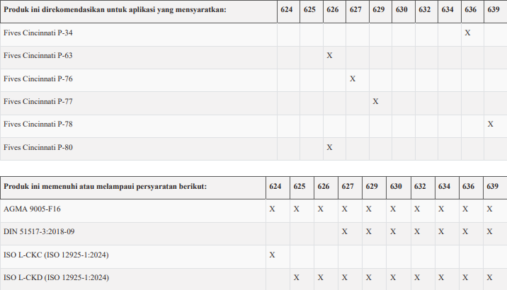 • Mobil SHC 629, 630, 632, 634, 636, dan 639 mendapat persetujuan Siemens AG untuk digunakan pada Flender gearbox
