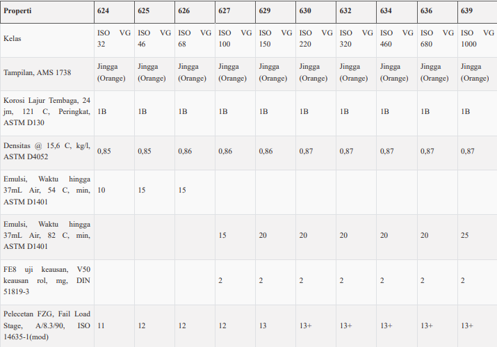 resistansi yang luar biasa terhadap karat dan korosi, antiaus, demulsibilitas, pengendalian busa, dan sifat pelepasan udara, serta kompatibilitas dengan berbagai